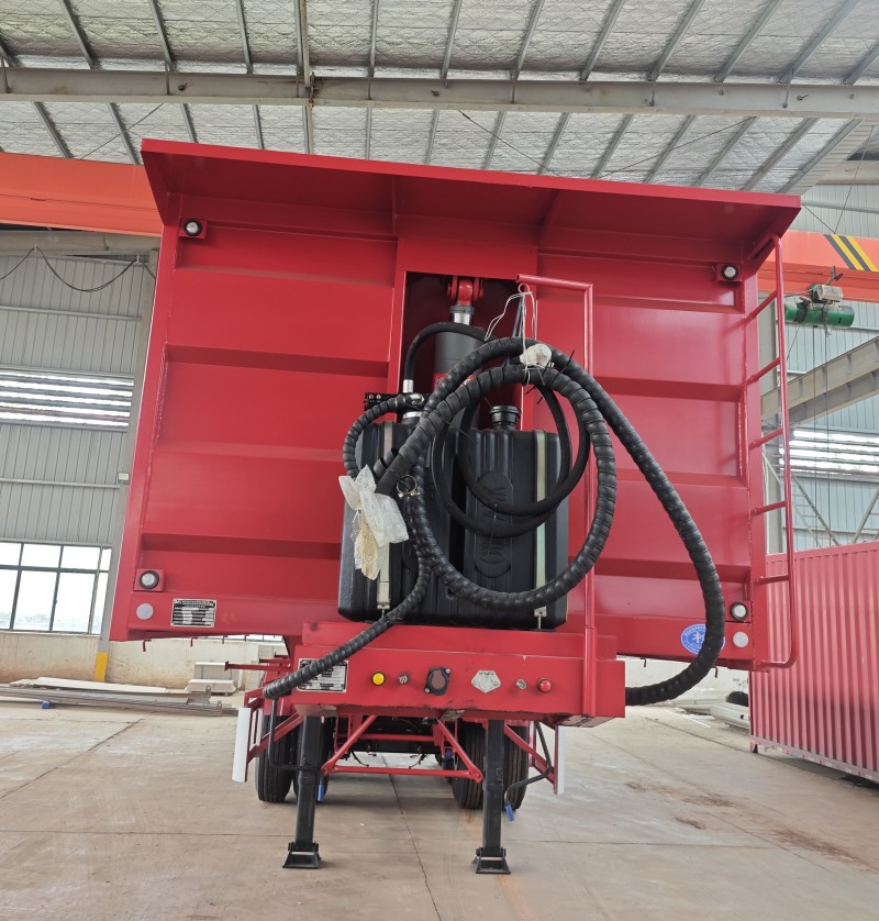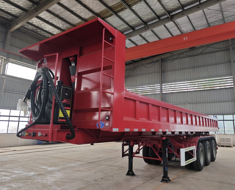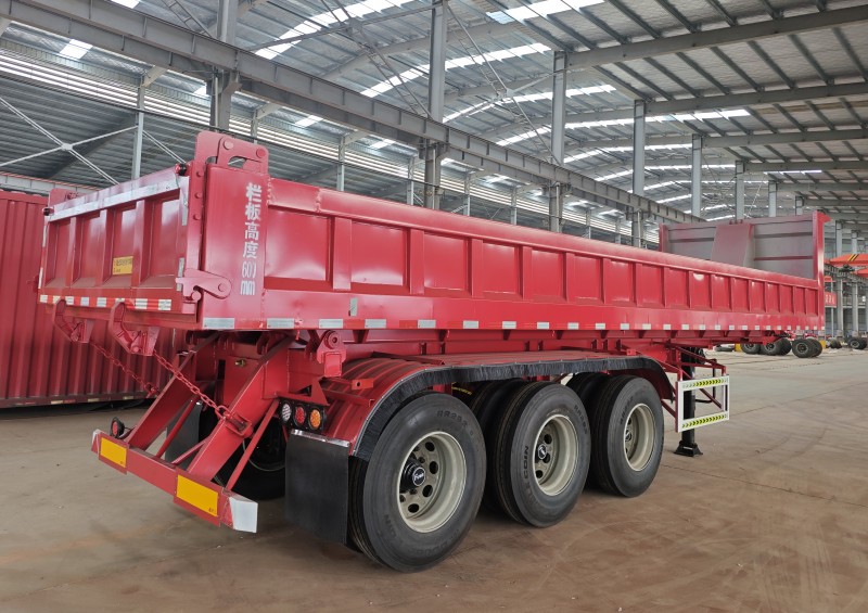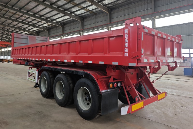 标准后翻自卸半挂车供客户选择的长度有7.5米、8米、8.5米、9米、9.5米、10米、10.5米,2.55米宽, 墙板高60公分。